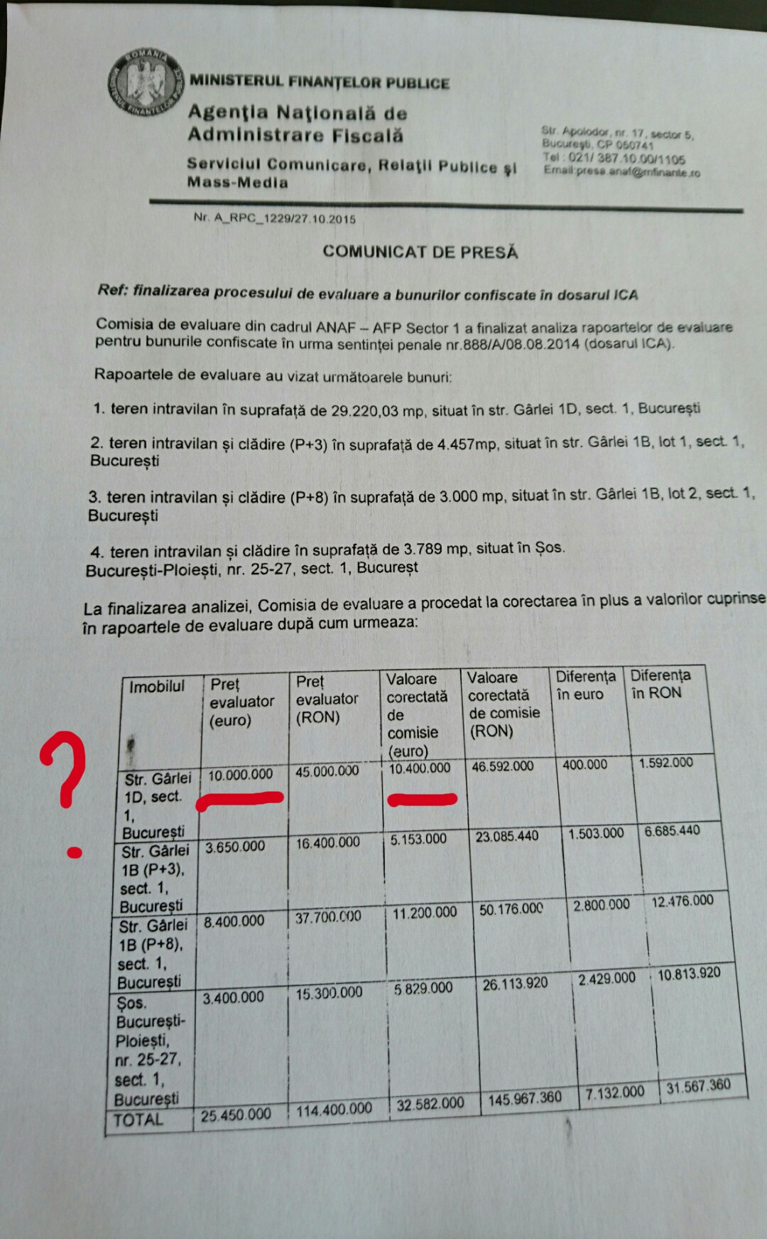 Deci “expertii” DNA au evaluat terenul ICA la 60 milioane de euro iar “onorata instanta” a confirmat ordinul de zi pe unitate. Vine ANAF si evalueaza la zece!?!?? Ei, nu-i mare diferenta: doar de sase ori :)))))