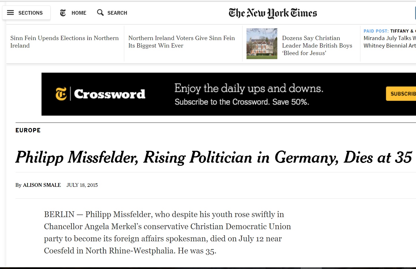 In Iulie 2015, presa din intreaga lume scria despre faptul ca un personaj-cheie în dosarul EADS a murit în condiţii suspecte. Cauza „oficială” a morţii lui Philip Missfelder, parlamentar german, a fost o ebolie pulmonară. Pe de altă parte, apropiați de-ai săi lasă de înțeles că moartea ar fi survenit în condiții suspecte. Tânărul de doar 35 de ani era membru al parlamentului german încă din 2005 şi unul dintre colaboratorii apropiaţi ai cancelarului Angela Merkel.