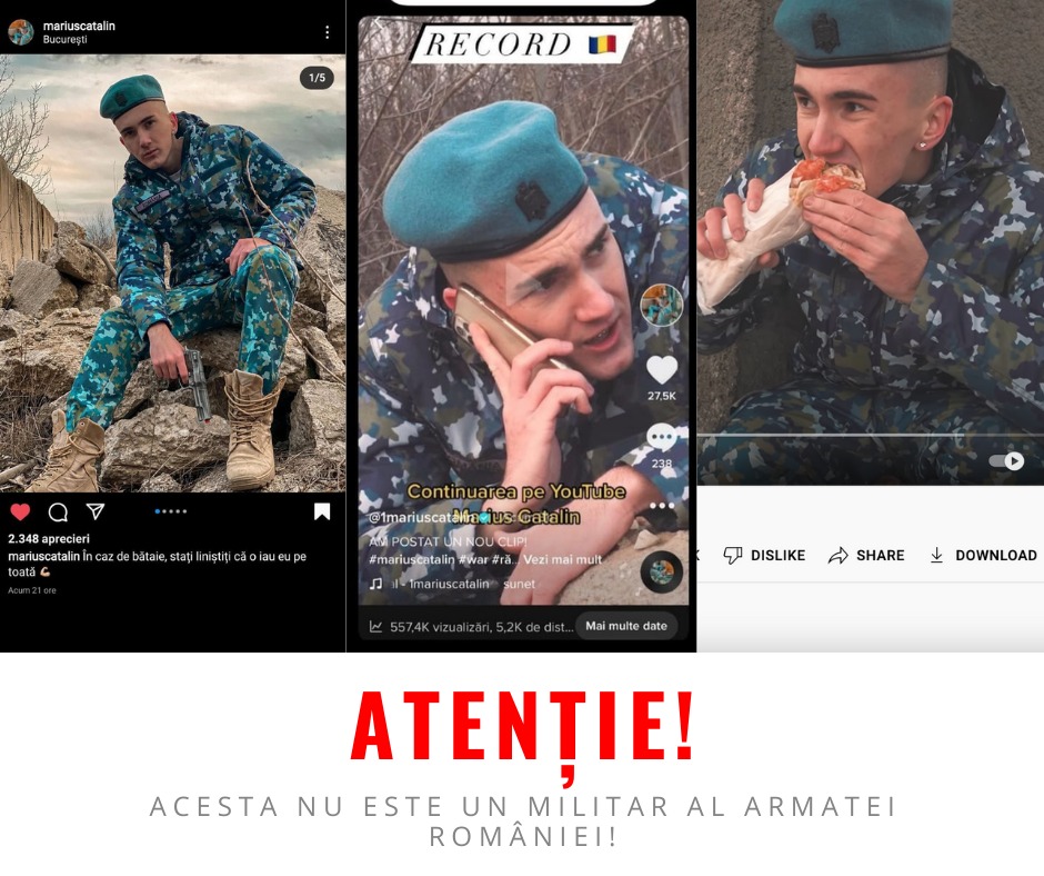 P.S. Postările și informațiile despre adevărații militari le puteți urmări pe paginile oficiale ale MApN deschise în următoarele platforme de socializare: