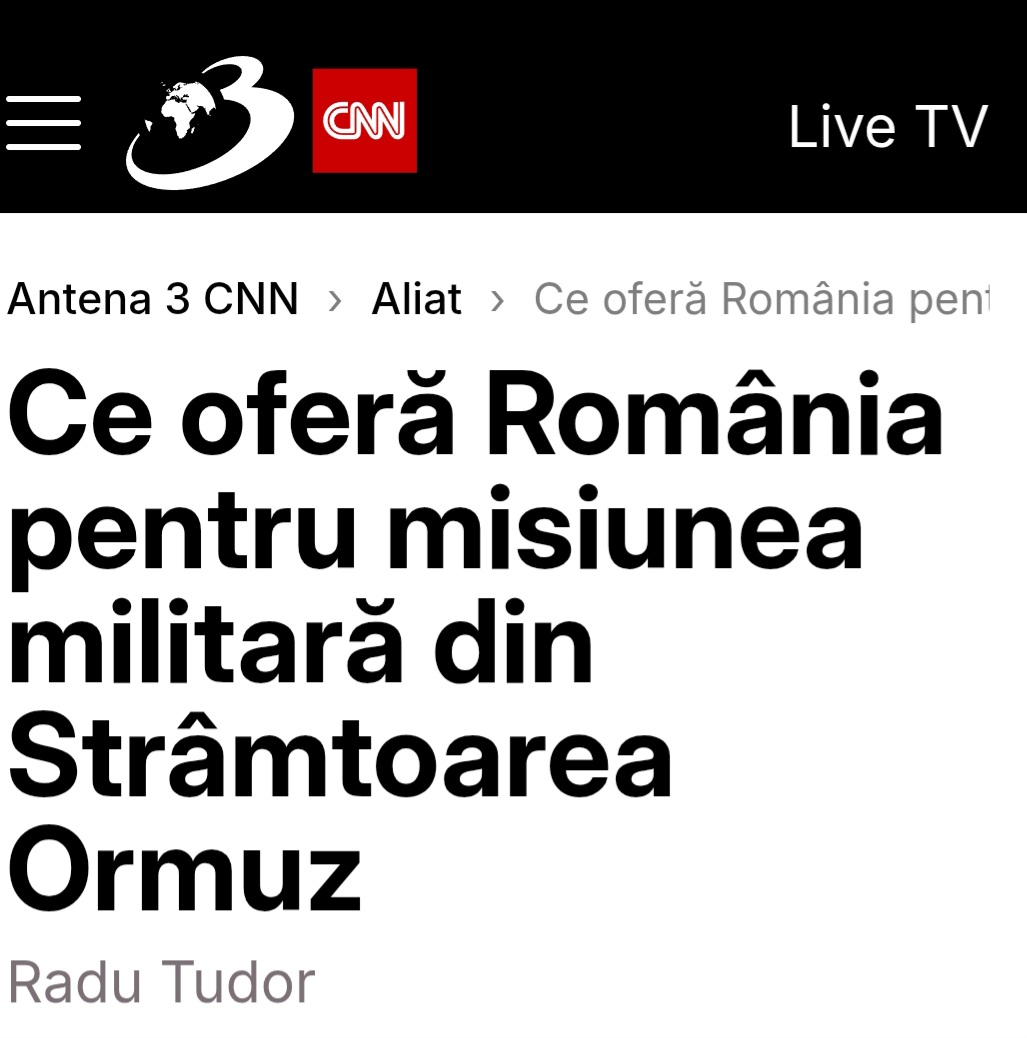 Ce oferă România pentru misiunea militară din Strâmtoarea Ormuz https://www.antena3.ro/aliat/ce-ofera-romania-pentru-misiunea-militara-din-stramtoarea-ormuz-785319.html