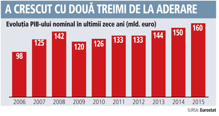 O creştere nominală de PIB de peste 60 mld. euro, de la 98 mld. euro în 2006 la 160 de miliarde de euro în 2015 (plus 63%).