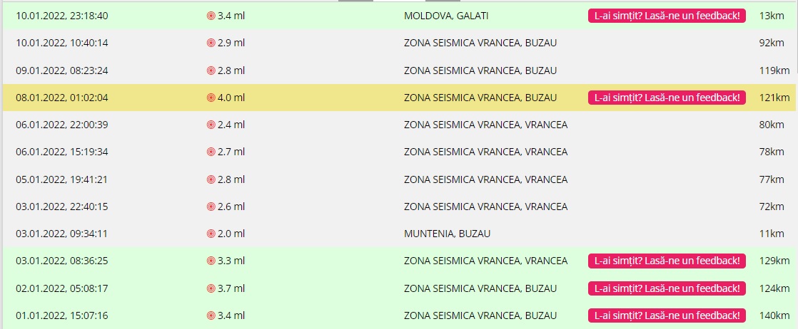 Dintre acestea, 7 cutremure au avut intensitate peste 3 grade scara Richter, unul fiind chiar de 4 grade.
