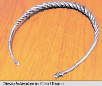 Un colan dacic torsadat (torques) din argint, care are aproximativ 2.000 ani, a fost găsit în comuna harghiteană Siculeni, de către un căutător de comori.