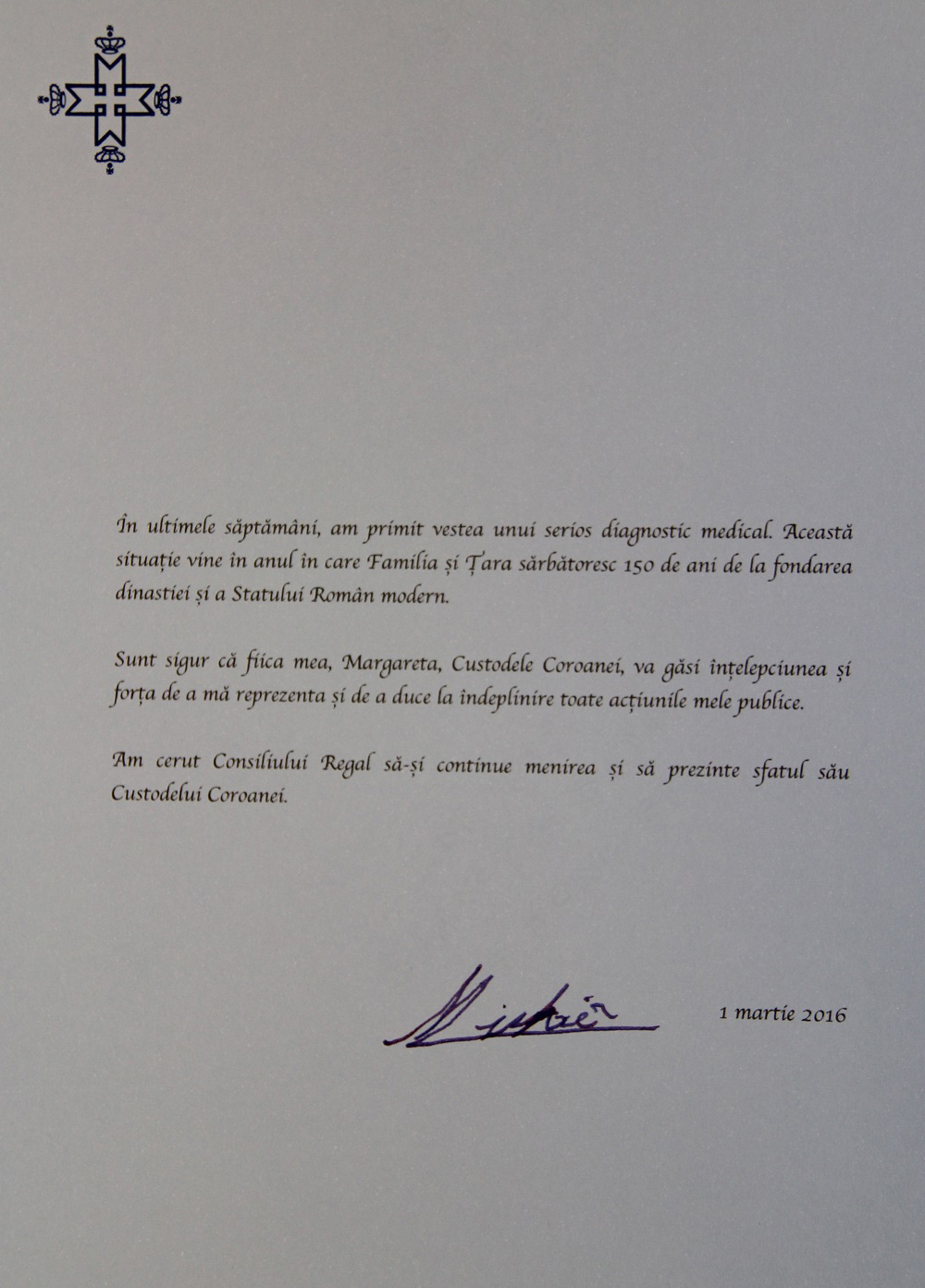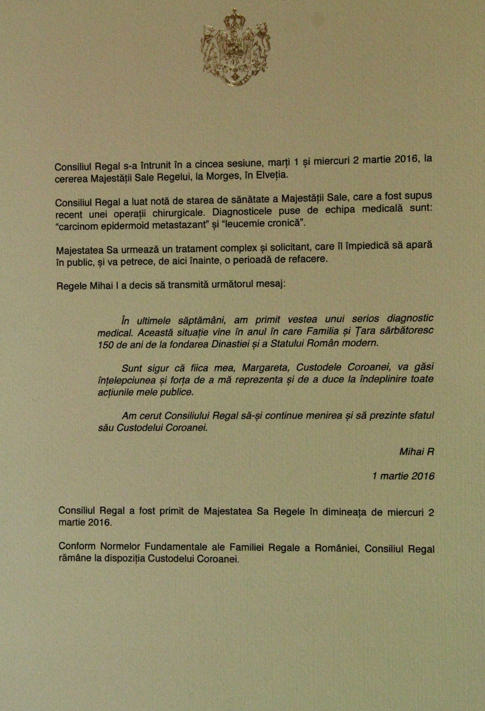 Articole Less than 1 min.Read Documentele esentiale semnate de Regele Mihai By Radu Tudor March 2, 2016 FacebookTwitterPinterestLinkedin Iata ultimele documente semnate de Majestatea Sa Regele Mihai : Hot this week Articole Papa Leon : “Lumea este devastată de o mână de tirani” April 17, 2026 0 Papa Leon al XIV-lea a îndemnat joi la reconciliere... Articole Războiul florilor de cireș April 17, 2026 0 În Coreea de Sud, ca și în Japonia, începutul... Articole Grupul Bilderberg, dialoguri discrete la Washington April 17, 2026 0 Cea de-a 72-a reuniune a grupului Bilderberg, conferinţa politică... Articole Cât e datoria externă a României? April 17, 2026 0 Datoria externă pe termen lung a însumat 182,519 miliarde... Articole Foste mine de cărbune, devenite paradis turistic în Germania April 17, 2026 0 Un proiect de zeci de ani de transformare a... Topics Articole Papa Leon : “Lumea este devastată de o mână de tirani” 0 Papa Leon al XIV-lea a îndemnat joi la reconciliere... Articole Războiul florilor de cireș 0 În Coreea de Sud, ca și în Japonia, începutul... Articole Grupul Bilderberg, dialoguri discrete la Washington 0 Cea de-a 72-a reuniune a grupului Bilderberg, conferinţa politică... Articole Cât e datoria externă a României? 0 Datoria externă pe termen lung a însumat 182,519 miliarde... Articole Foste mine de cărbune, devenite paradis turistic în Germania 0 Un proiect de zeci de ani de transformare a... Articole Câte de valoros e aurul? 0 Aurul a avut una dintre cele mai abrupte corecții... Articole Un control făcut la timp! Cum a fost depistată boala oncologică într-un stadiu tratabil 0 Un control făcut la timp! Cum a fost depistată... Articole Primul Ambasador al lui Trump în România : Orbán a servit drept cel mai eficient avocat al Moscovei în cadrul instituțiilor occidentale 0 Votul Ungariei transmite un mesaj clar: democrația contează în... Related Articles Papa Leon : “Lumea este devastată de o mână de tirani” Articole April 17, 2026 Războiul florilor de cireș Articole April 17, 2026 Grupul Bilderberg, dialoguri discrete la Washington Articole April 17, 2026 Cât e datoria externă a României? Articole April 17, 2026 Foste mine de cărbune, devenite paradis turistic în Germania Articole April 17, 2026 Popular Categories ArticoleOpinionTripadvisor Articolul precedentMajestatea Sa Regele Mihai in stare foarte gravaArticolul următorSute de copii ucisi in Siria de bombele rusesti