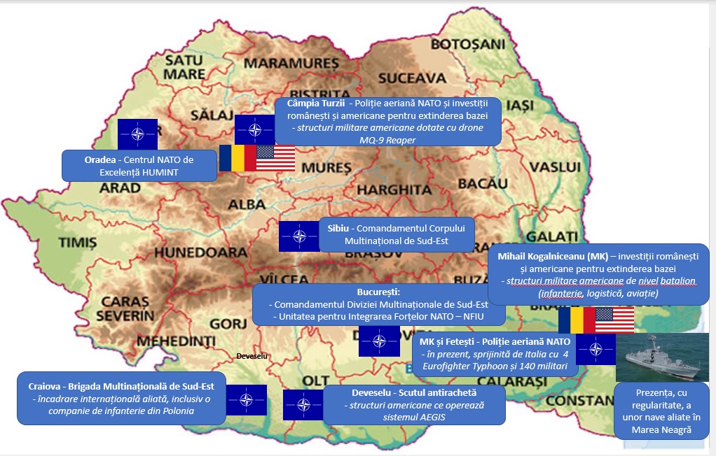 Iata harta unitatilor cu participare multinationala NATO de pe teritoriul Romaniei :