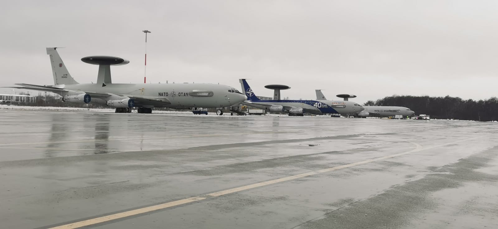 Pentru prima oara in istoria Aliantei, NATO a decis amplasarea a 3 avioane AWACS pe teritoriul Romaniei. Timp de 8 saptamani, 180 de militari aliati executa misiunile cu aeronavele AWACS de la Baza 90 Transport Aerian.
