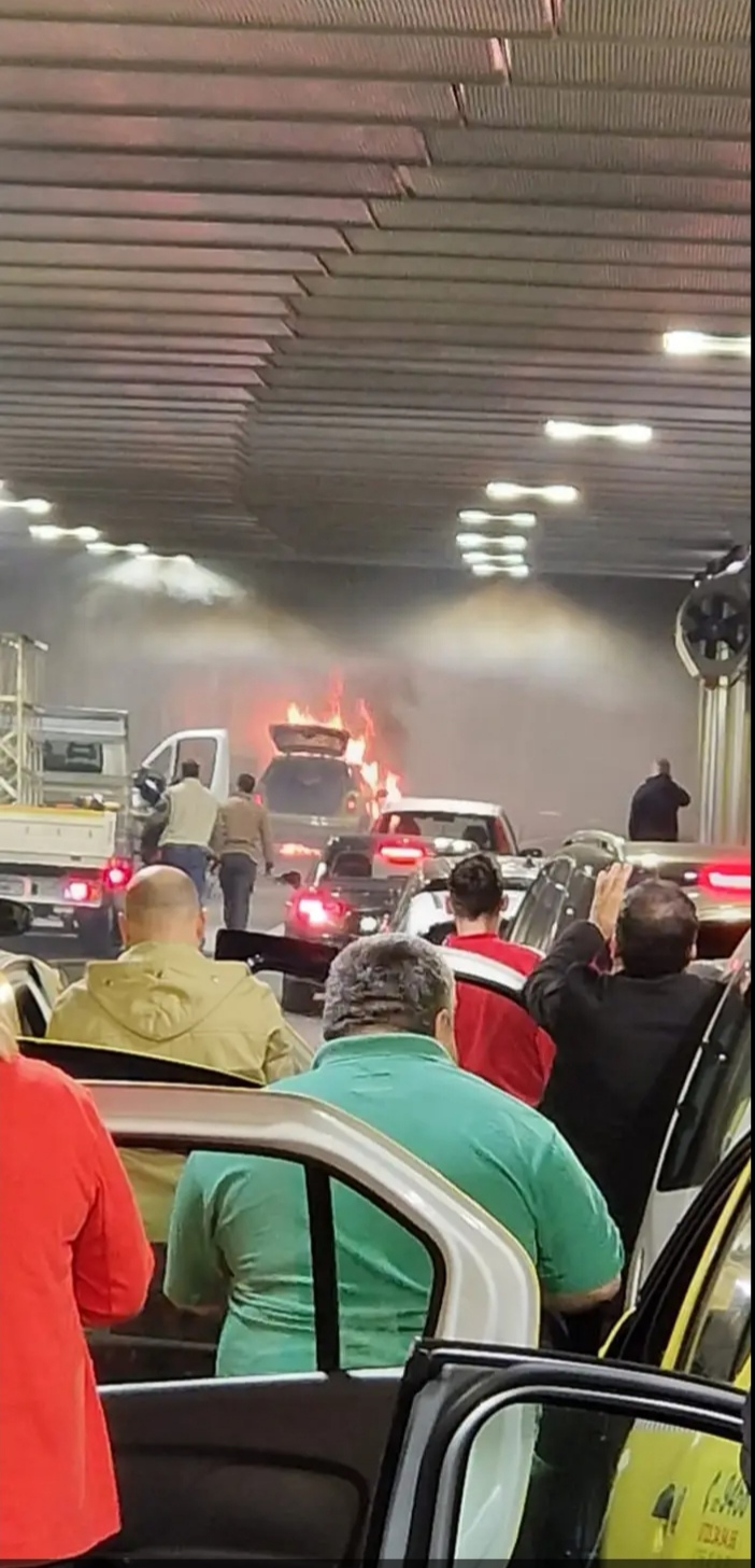 O mașină a luat foc, iar pasajul s-a umplut cu fum.
