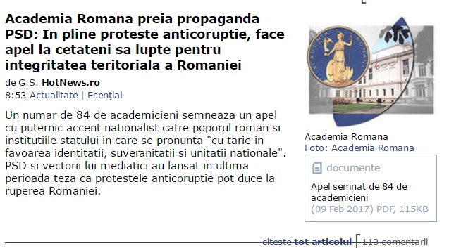 Intr-un mod absolut ciudat, dovedind un partizanat politic dincolo de limite, site-ul Hotnews acuza zecile de academicieni respectabili ca sunt, nici mai mult nici mai putin, decat “propagandisti PSD”.