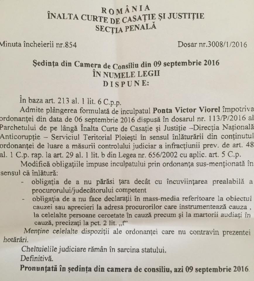Update – decizia judecatorilor de a mentine interdictia de a vorbi sau lua legatura cu ceilalti inculpati sau martori pe timpul desfasurarii anchetei este legala si logica ( ca sa nu fiu acuzat ca as vrea sa ii influentez) – de aceea am spus si in fata procurorilor DNA si in fata ICCJ ca o consider intemeiata si o voi respecta cu strictete.