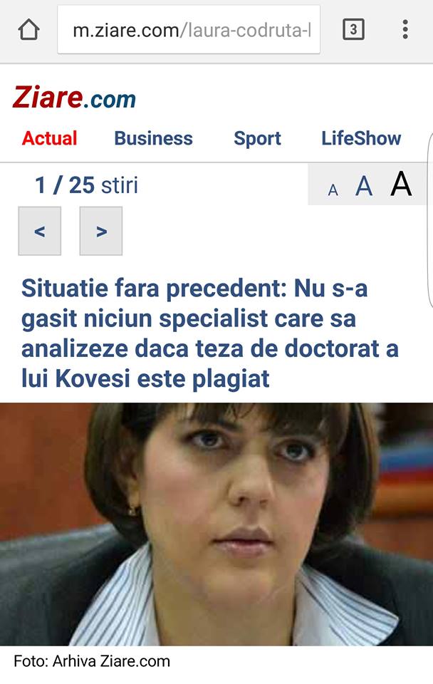 Mircea Badea a comentat in emisiunea sa de la Antena 3, In Gura Presei, un fapt absolut incredibil : mediul universitar romanesc e dominat de frica. Specialistii se tem sa faca parte dintr-o comisie care trebuie sa analizeze daca sefa DNA Laura Codruta Kovesi a plagiat sau nu in lucrarea sa de doctorat. Argumentul lui Mircea Badea se bazeaza pe un articol de pe site-ul www.ziare.com. Un singur argument as mai aduce in plus fata de cele deja mentionate : Rectorul Universitatii de Vest din Timisoara, care a dat un verdict fara sa aiba comisie de specialisti, este Marilen Pirtea, candidat PNL la Timis.