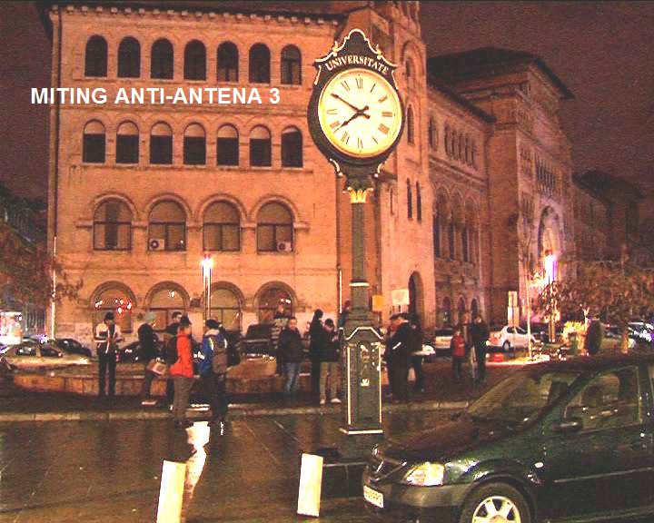 Imediat dupa intalnirea noastra cu miile de sustinatori, basistii au organizat si ei un miting anti-Antena 3 linga Universitate. Au participat 9 basisti si 2 jandarmi.