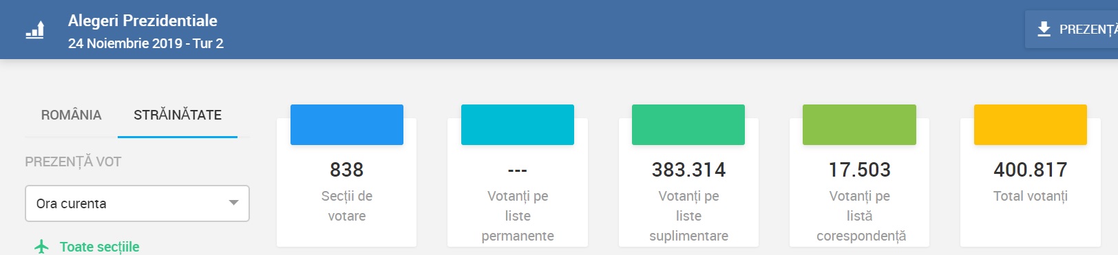 La ora 10,00, in diaspora s-a atins pragul de 400.000 votanti.