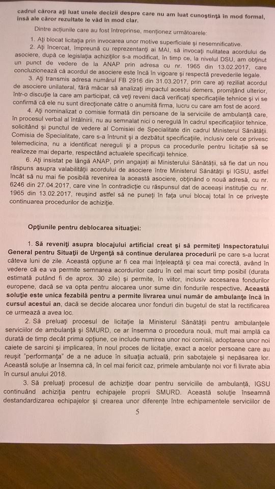 Secretarul de stat Raed Arafat, seful Departamentului pentru Situatii de Urgenta, a lansat public mai multe semnale privind un aranjament necurat ce implica amanarea inlocuirii ambulantelor cu probleme tehnice si un numar foarte mare de kilometri.