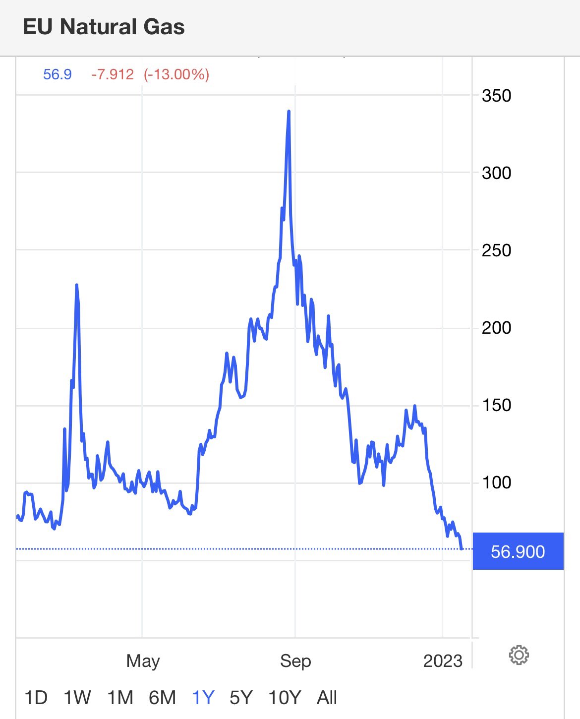 Suntem la jumatatea iernii si s-a ales praful de santajul Rusiei. Temperaturile sunt ridicate, consumul de gaz mic, pretul a scazut puternic iar perspectiva este ca #Europa sa devina complet independenta de gazul rusesc.