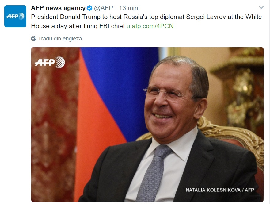 PS : La cateva ore dupa demiterea absolut dubioasa a Directorului FBI, Donald Trump il primeste la Casa Alba pe seful diplomatiei ruse, Serghei Lavrov