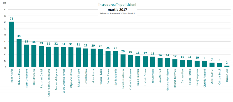 • Daniel Constantin este la nivelul mediu de încredere de 20%. Ministra Gavrilescu începe să scoată capul, la 15%